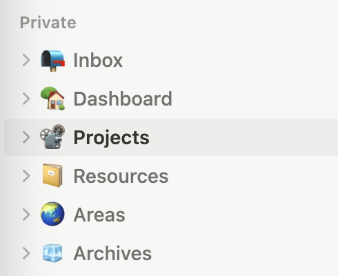 如理论篇提到,我的Notion中有P(Projects)/A(Areas)/R(Resources)/A(Archives)几个页面。
